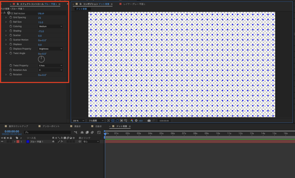 エフェクトから「CC Ball Action」を平面レイヤーにかける