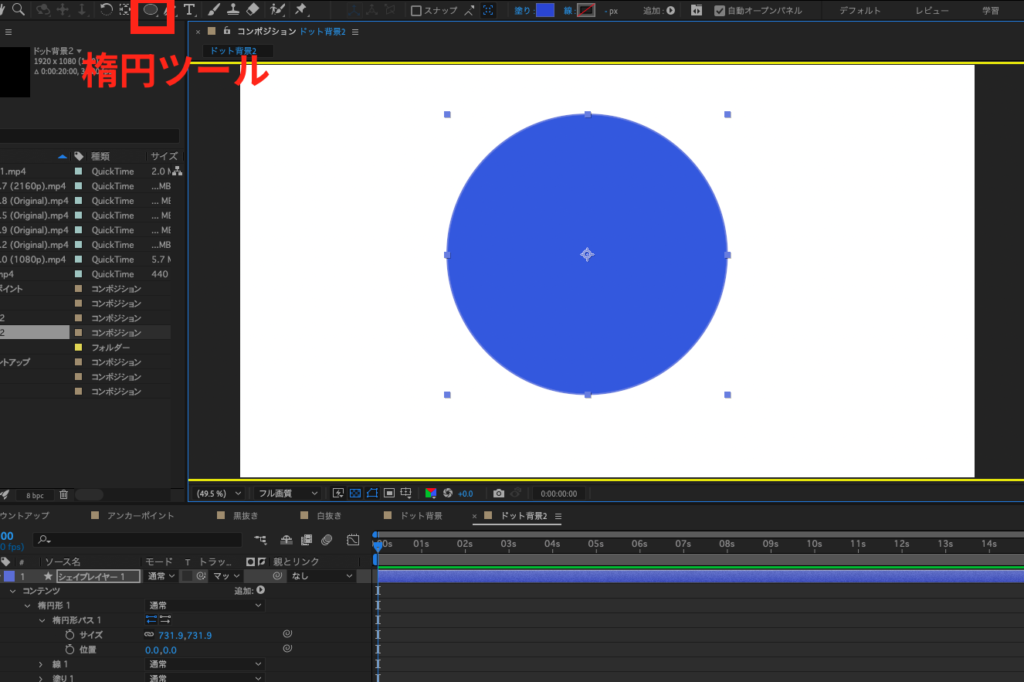 楕円形ツールで円を作ります。この際にShiftをしながらドラックすると、綺麗な円を書くことができます。