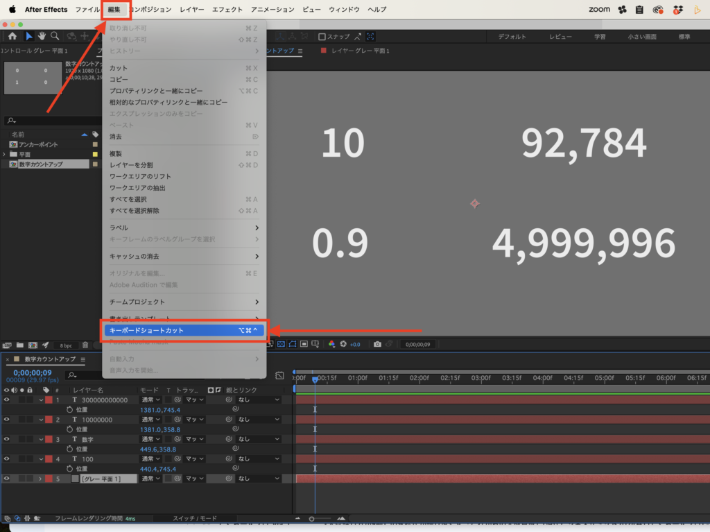 アフターエフェクトでショートカットを変更させる方法