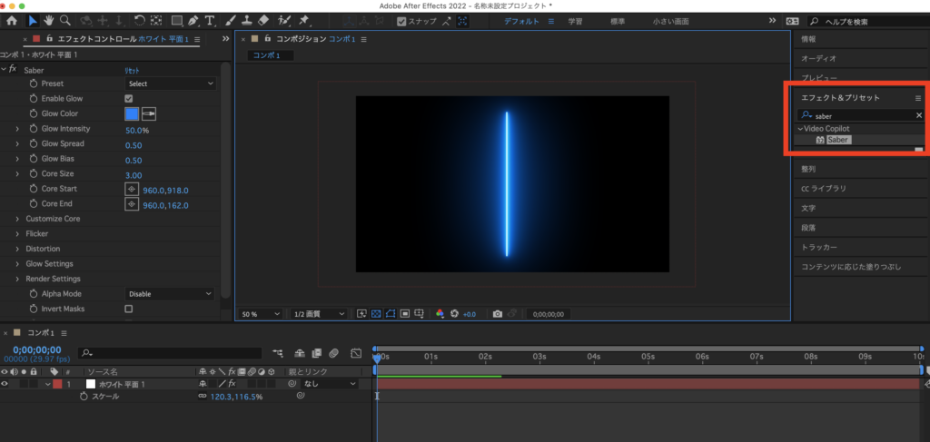 ⑥After Effectsのエフェクトに新しく、追加されるようになります。